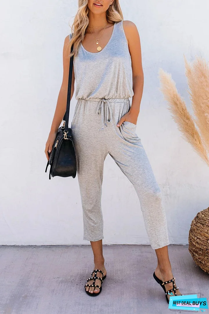 Swobodny solidny patchwork U szyja zwykłe kombinezony (3 kolory)